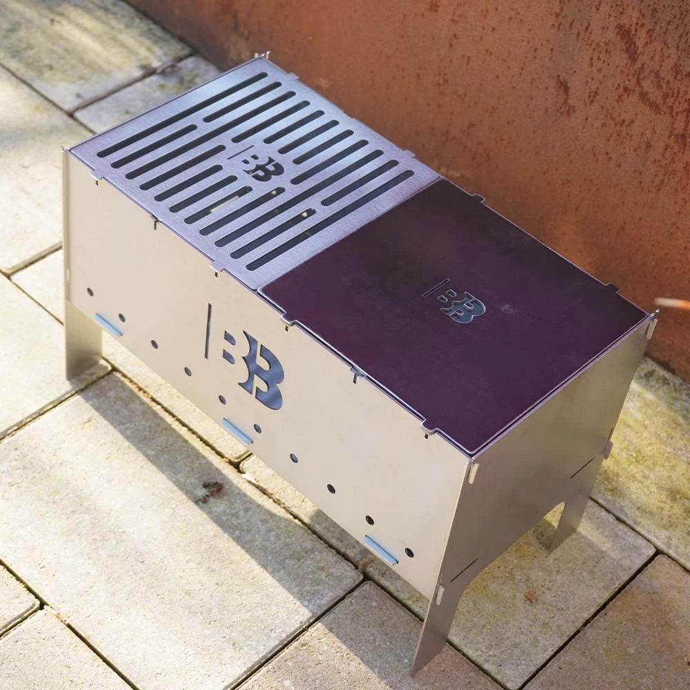 Passend zur BlazeBox Station Medium können Sie unser Kombi-Set verwenden. Verwandeln Sie jeden Ausflug zur Grillparty. Sie können auf dem Rost aus Edelstahl Steaks und Würstchen grillen und gleichzeitig, auf der Platte aus massivem Stahl, z. B. Pfannkuchen oder Rühreier zubereiten. Ihrer Kreativität sind keine Grenzen gesetzt. Unsere BlazeBox ist genau das Richtige für alle Festival-Freunde, Camper und jeden Ausflug, denn sie ist langlebig, stabil, hochwertig und vor allem 100 % nachhaltig. Auch bei häufigem Auf- und Abbau hat sie eine lange Lebensdauer und ist durch die einfache Handhabung schnell und einfach aufgebaut. Dank unserer eigenen Produktion in unserem Werk am Niederrhein können wir den hohen Qualitätsansprüchen von uns und unseren Kunden gerecht werden.