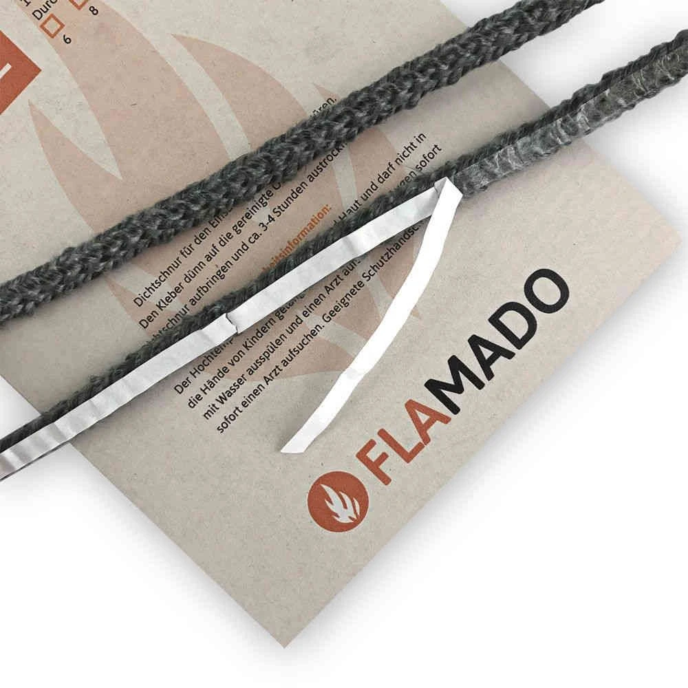 Dichtschnur flach (Glasgewebe) 9 x 4 mm / 1 m selbstklebend, passend für Kamine und Öfen