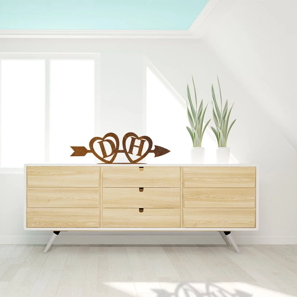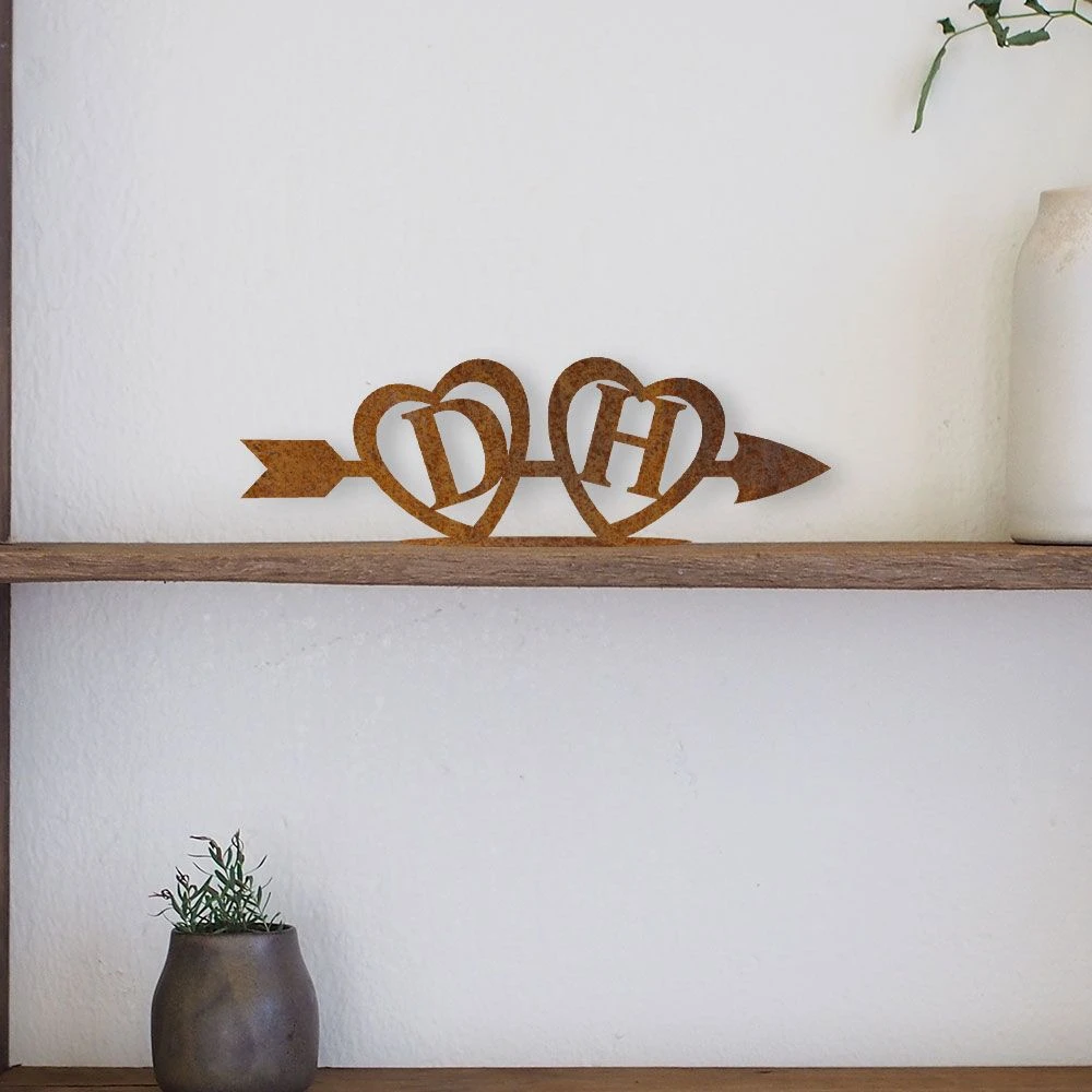 Mit dem Edelrost Liebespfeil mit Ihren Initialen setzen Sie Highlights in Garten, Terrasse und in Ihrem Heim. Ob für Sie selber oder als Geschenk – Aufsteller in Rostoptik sind die ideale Ergänzung für Ihre dekorative Gestaltung. Sie haben die Möglichkeit 2 Zeichen zu platzieren. Geben Sie einfach Ihre Wunschzeichen in das Textfeld ein.