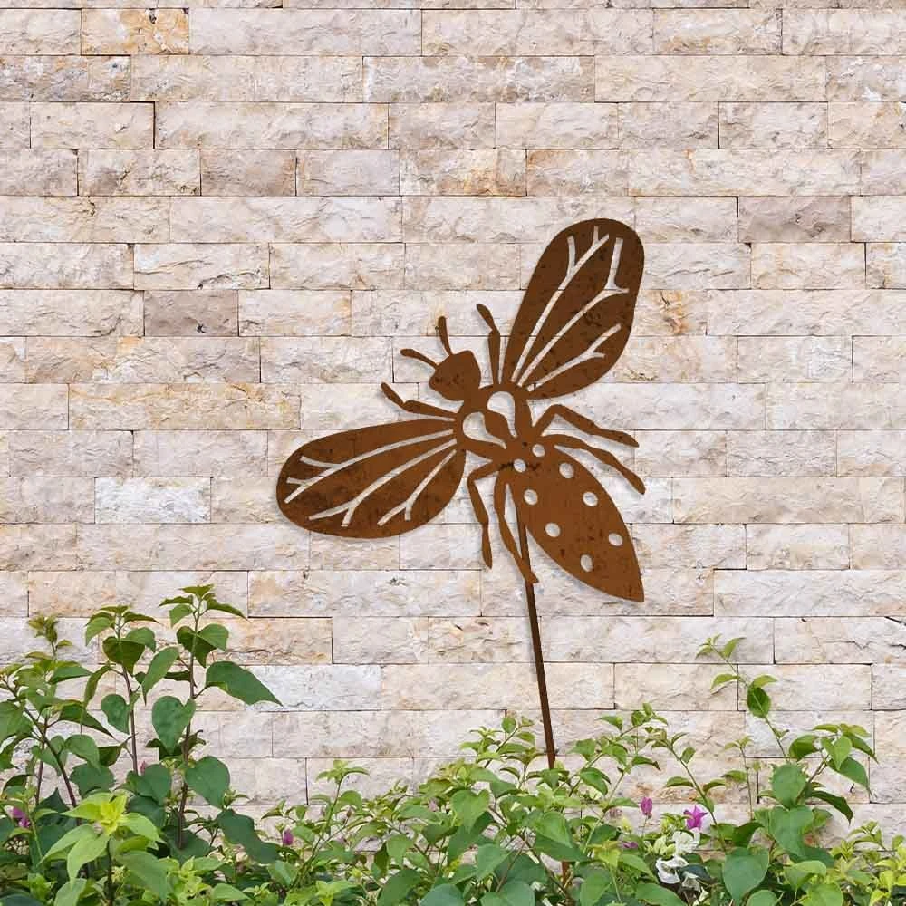 Mit der Edelrost Wegwespe setzen Sie ein Highlight in Garten, Terrasse oder in Ihrem Zuhause. Figuren in Rostoptik sind die ideale Ergänzung für Ihre dekorativen Gestaltungen. Bitte beachten Sie, dass jede Dekoration ein individuelles Rostmuster hat und farblich von der Abbildung in unserem Shop abweichen kann.