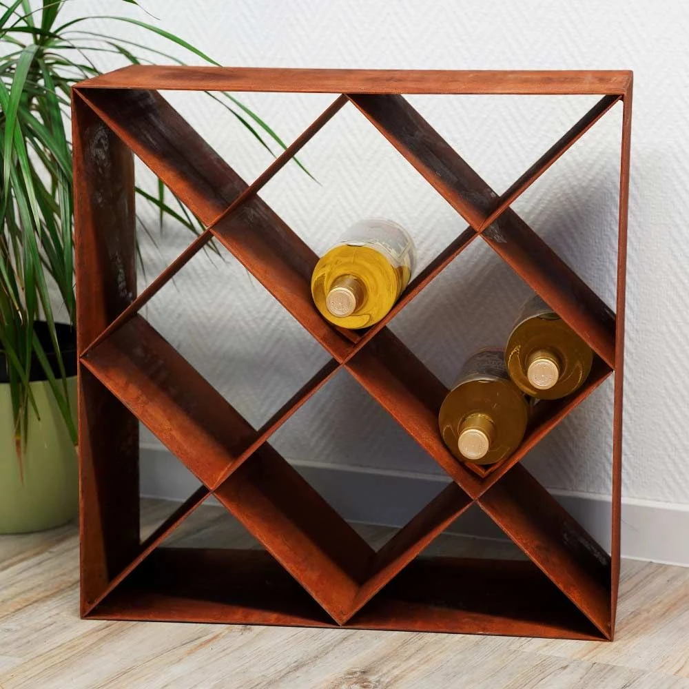 Mit dem Edelrost Weinregal setzen Sie ein Highlight in Ihrem Heim. Unser Weinregal rouille ist modern und funktionell. Bitte beachten Sie, dass jede Dekoration ein individuelles Rostmuster hat und farblich von der Abbildung in unserem Shop abweichen kann.