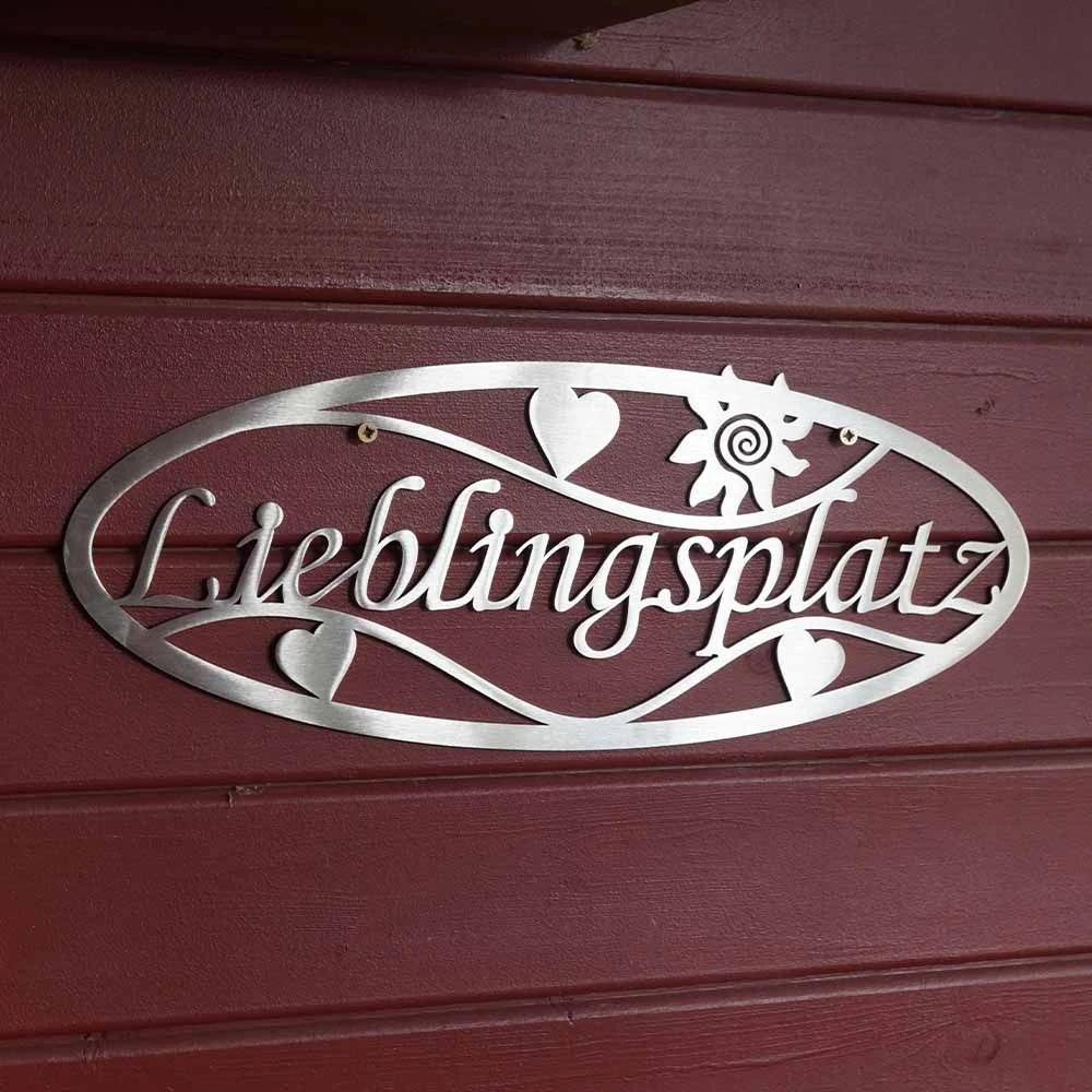 Setzen Sie mit dem Edelstahl Aufhänger ein Statement und zeigen Sie Ihren Lieblingsplatz in Haus und Garten. Dank der liebevollen Details und der filigranen, verspielten Schrift zieht dieser Aufhänger jeden Blick auf sich.