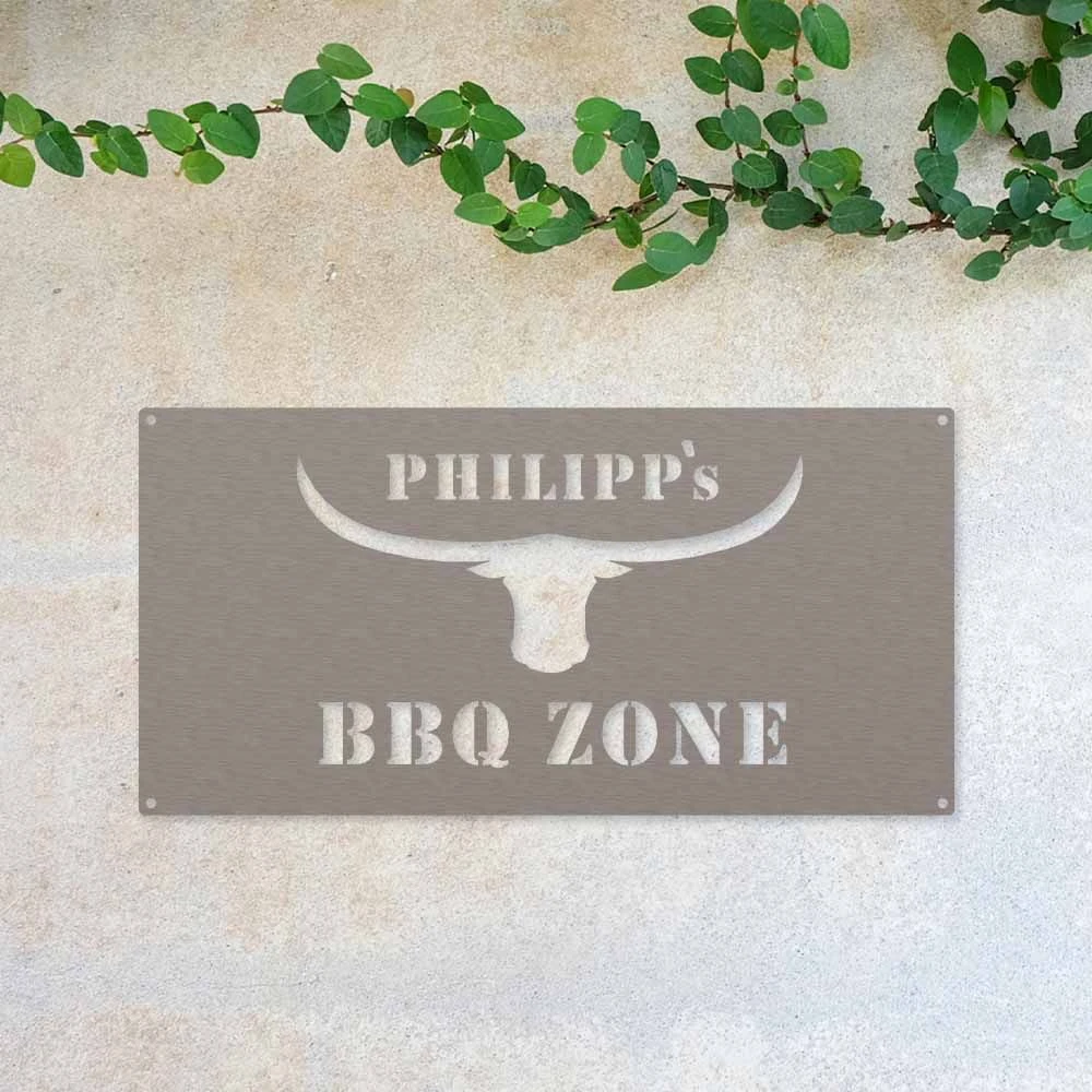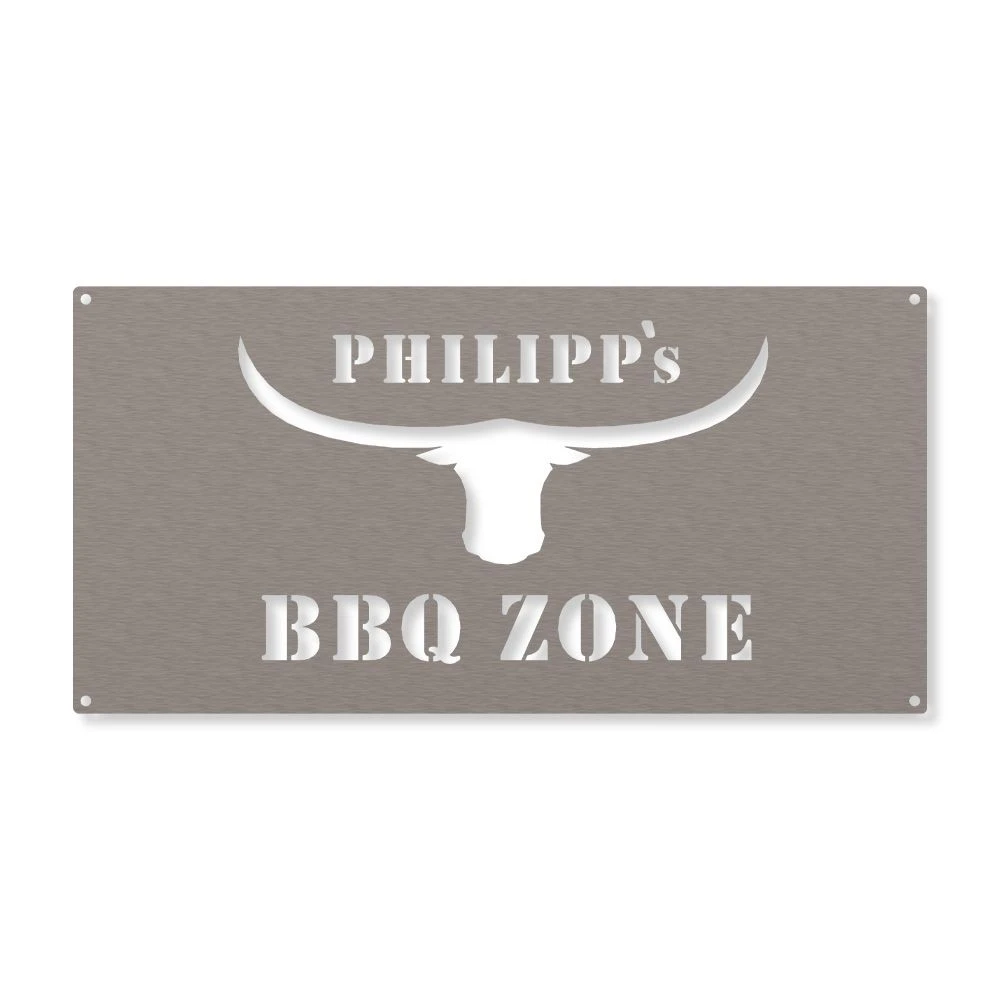 Edelstahl Schild BBQ Zone Mit Wunschnamen 20 X 40 Cm