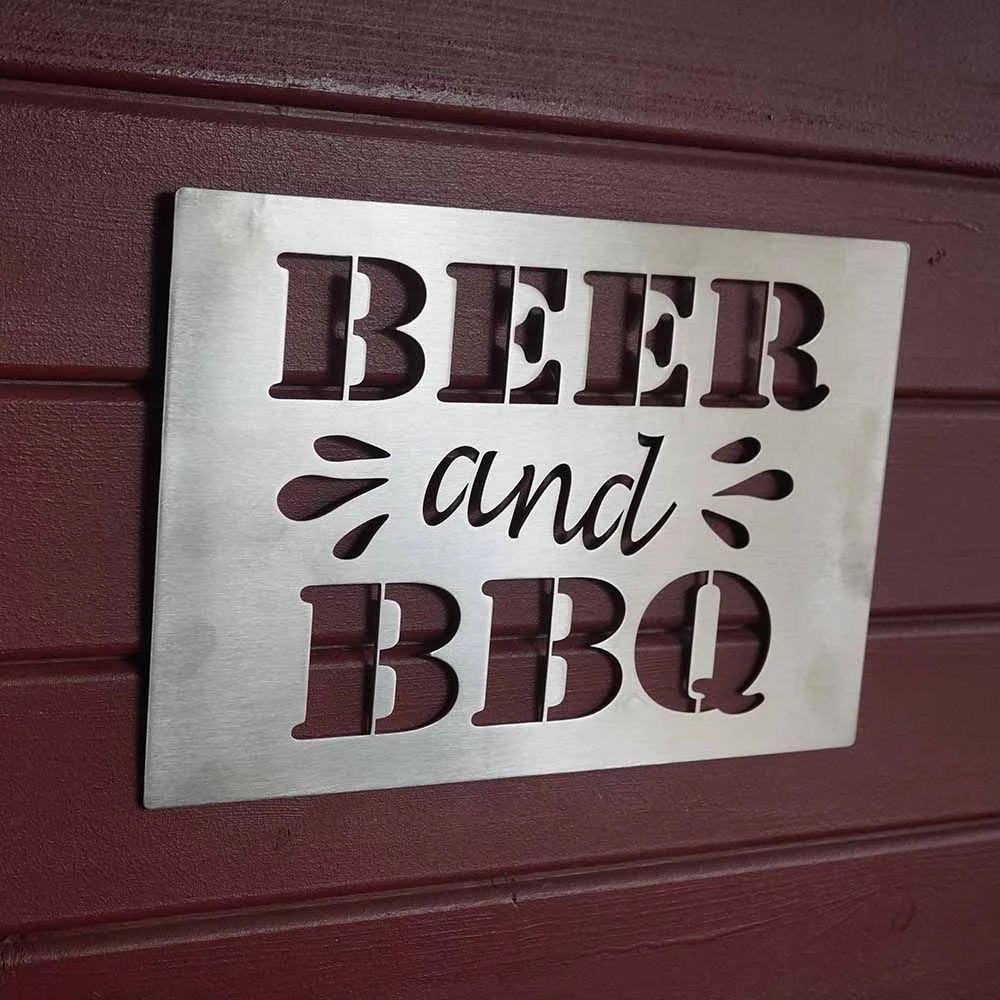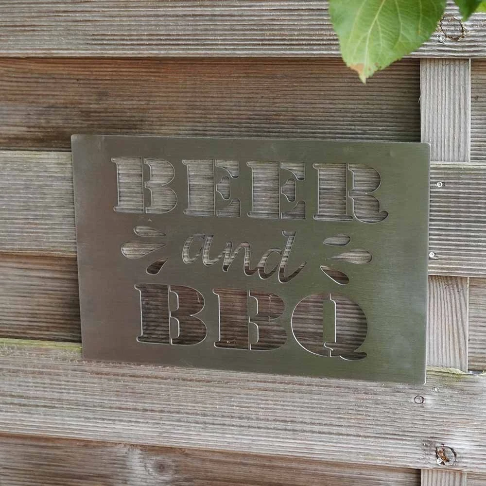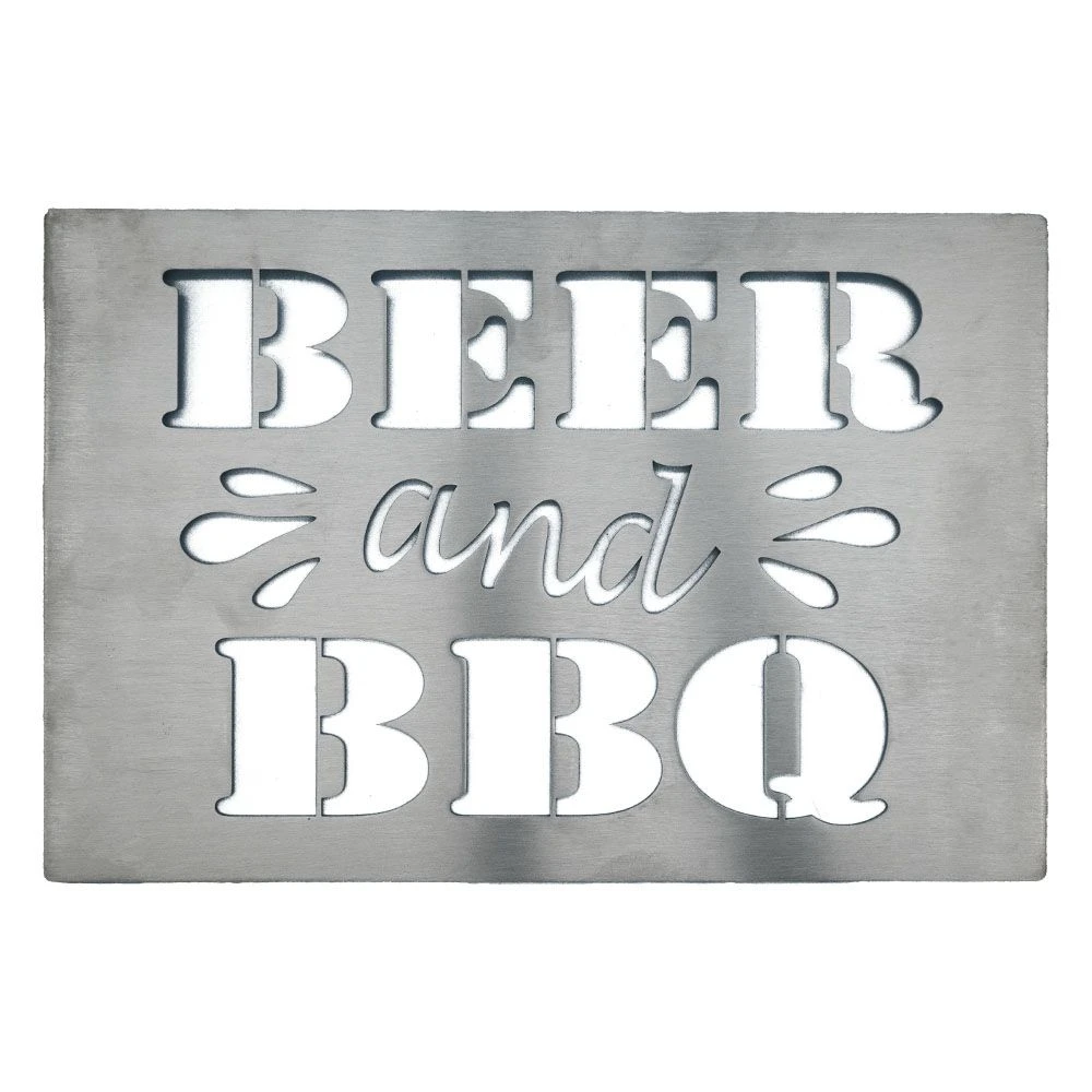 Edelstahl Schild Beer & BBQ Mit Aufhänger 30 X 20 Cm