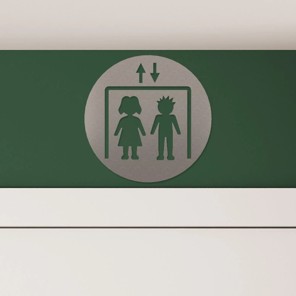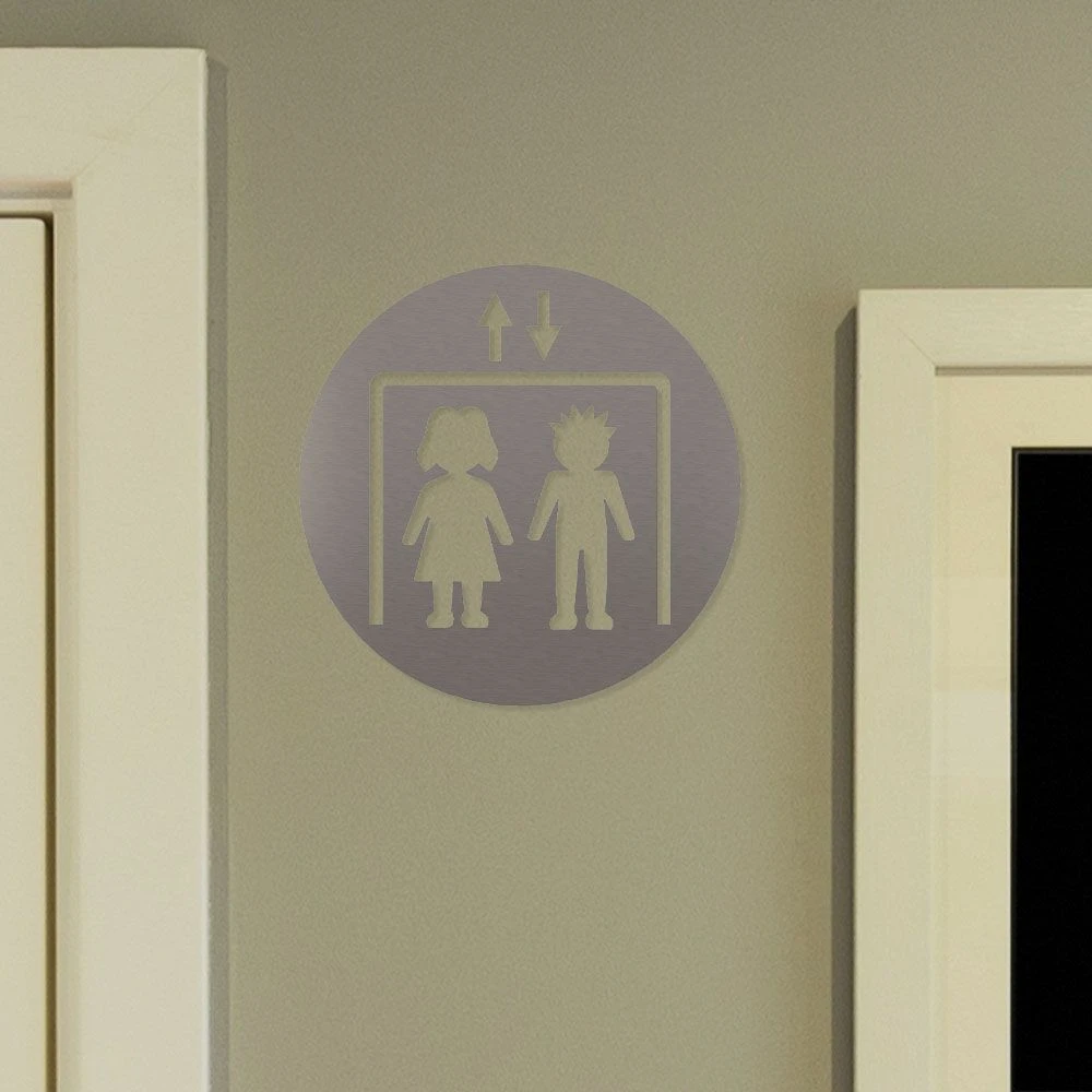 Fahrstuhl Piktogramm Rund Aus Edelstahl