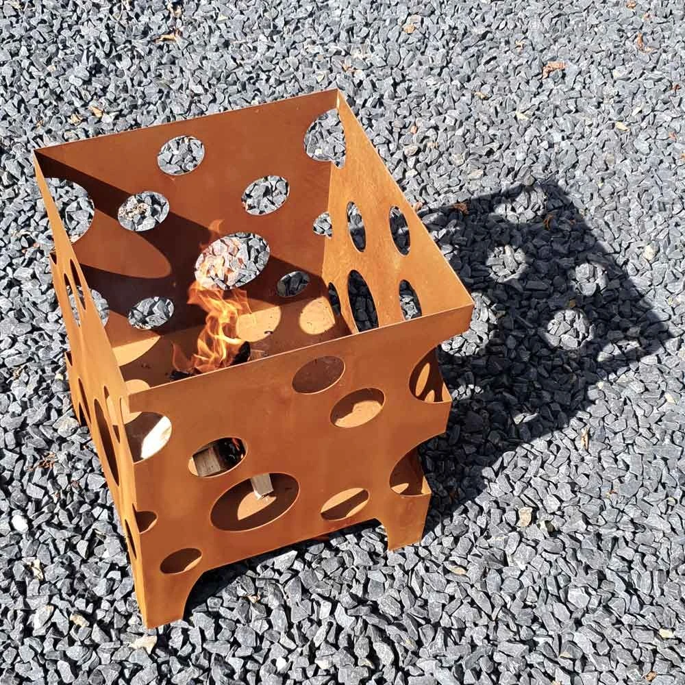 Unser Feuerkorb ØVENDECK Aalborg 40c passt auf jede Terrasse, Garten oder Feuerplatz. Wir halten Bodenschutzplatten und passende Kaminholzregale in Rostoptik sowie Feuerböcke für Sie in unserem Sortiment bereit.