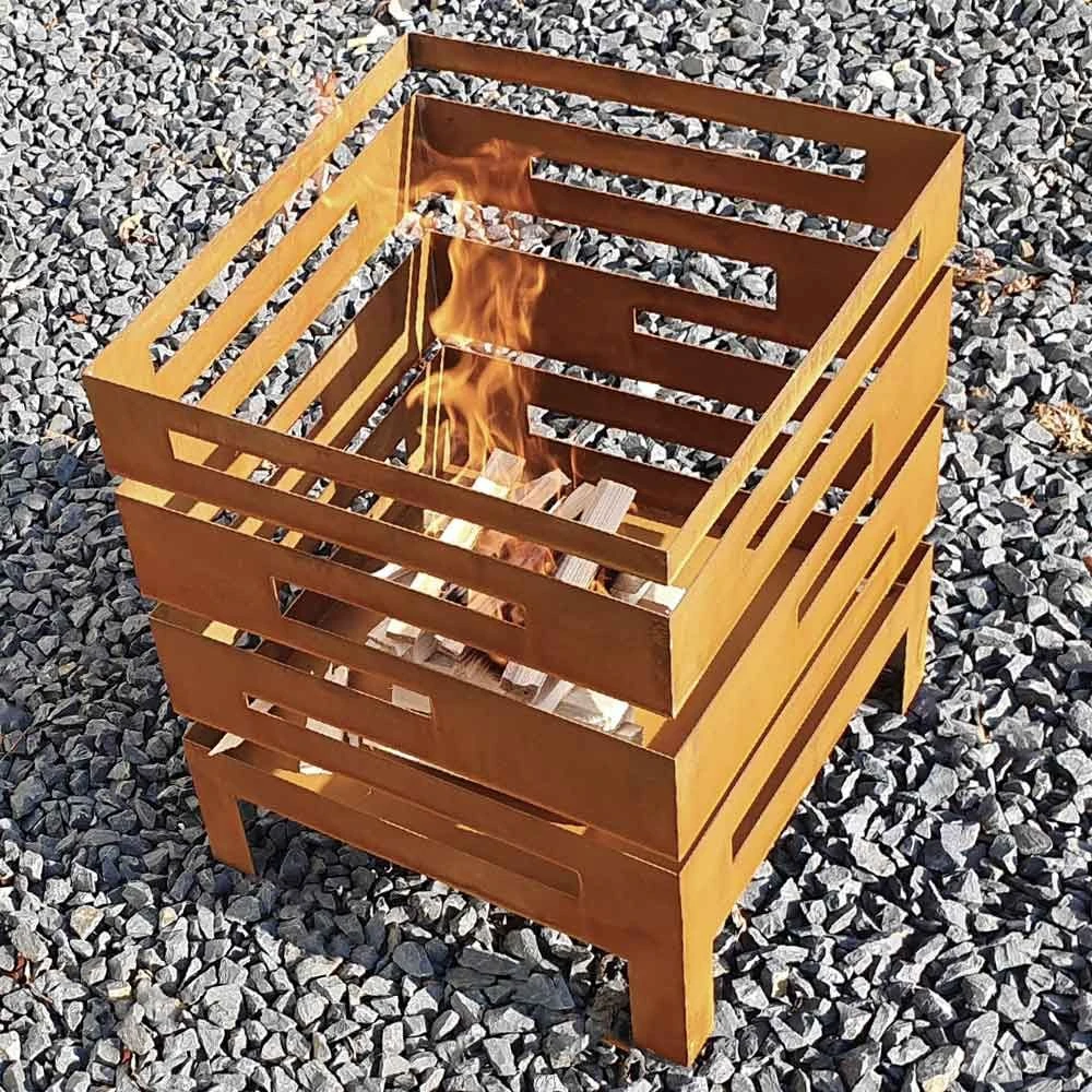 Gefertigt aus 2mm Cortenstahl in Rostoptik – der Hingucker für Garten und Terrasse. Genießen Sie mit Ihren Liebsten die gemütliche Atmosphäre eines Feuerkorbs im eigenen Garten. Nehmen Sie das Gefühl von Wärme, Weite und Natur in sich auf.