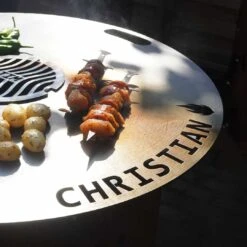 Gestalten Sie Ihre Feuerplatte mit Ihrem Wunschnamen oder mit einer Jahreszahl. Ob als Geschenk oder für Sie selber – eine personalisierte Feuerplatte ist das Highlight für die Gartenparty.