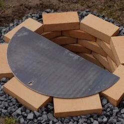 Lieferumfang: eine halbrunde Feuerplatte 85 cm. Die Feuerstelle und sonstiges Zubehör sind im Lieferumfang nicht enthalten