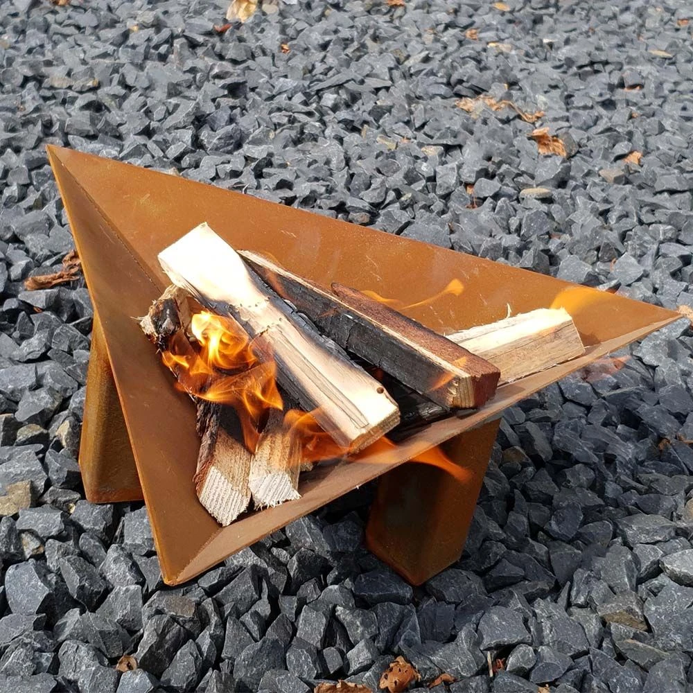 Unsere Feuerschale ØVENDECK Lund 60c ist in einer schönen Dreieck-Form angelegt. Zeitlos, passt diese Feuerschale auf jede Terrasse, Garten oder Feuerplatz. Wir halten Bodenschutzplatten und passende Kaminholzregale in Rostoptik für Sie in unserem Sortiment bereit.