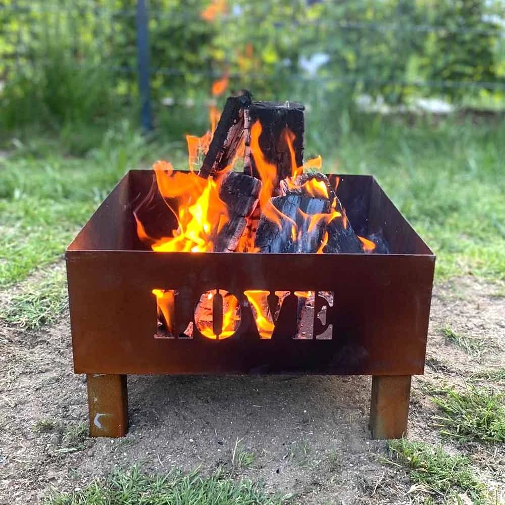 Unsere Feuerschale ØVENDECK Sandvika kann an zwei gegenüberliegenden Seiten mit einem Wunschtext versehen werden. Machen Sie sich, Ihrer Familie oder Ihren Freunden ein individuelles Geschenk. Sie haben die Möglichkeit 10 Zeichen zu platzieren. Ob Name oder Wort – wir fertigen Ihre individuelle Feuerschale an. Geben Sie einfach Ihren Wunschtext in das Textfeld ein!