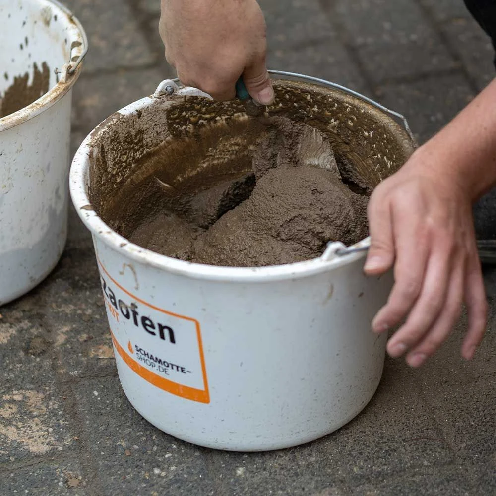 Unser Feuerzement (hydraulische Abbindung) ist ideal geeignet für den Bau von Grill- und Gartenkaminen, Backöfen, Pizzaöfen, Grundöfen sowie für den allgemeinen Einsatz im Feuerfestbau. Die Verarbeitungszeit des Feuerzements hat eine Verarbeitungszeit von 1-2 Stunden nach dem Ansetzen. Die Abbindung erfolgt hydraulisch. Das bedeutet, dass die Abbindung des Feuerzements durch die chemische Reaktion mit Wasser erfolgt.