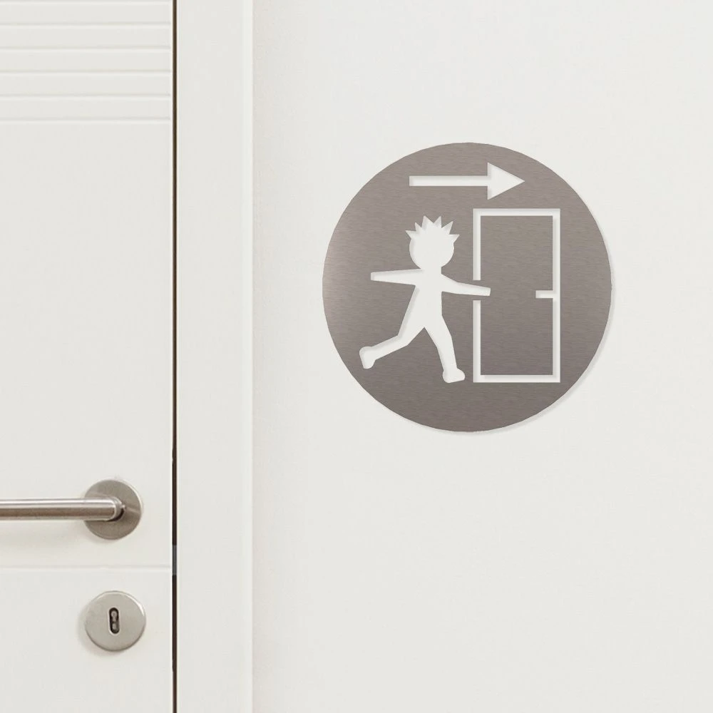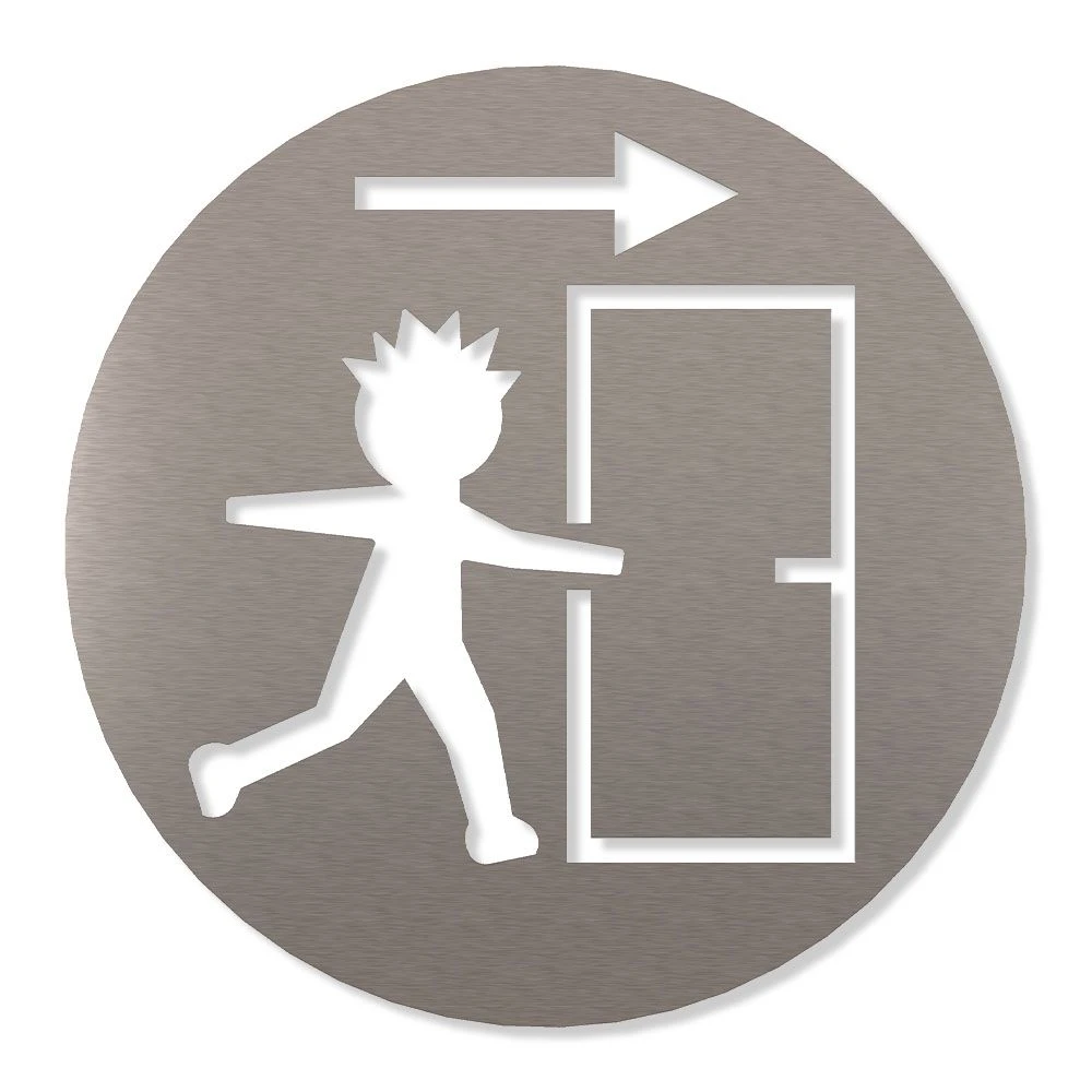 Mit dem Piktogramm „Notausgang“ erhalten Sie ein elegantes Schild für die einfache Anbringung an Türen und Wänden, z. B. zur Kennzeichnung von Sanitärräumen im Büro, in Geschäften, in Hotels oder in öffentlichen Gebäuden. Unsere Piktogramme werden in Handarbeit aus hochwertigem Edelstahl gefertigt und sind langlebig und robust.