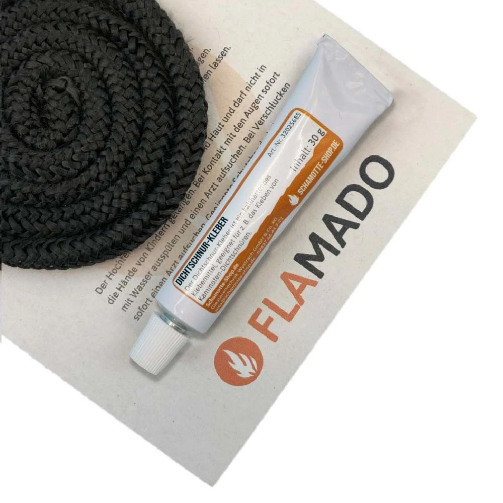 Dieses Set beinhaltet neben der Dichtschnur auch einen passenden Hochtemperaturkleber zur Anwendung in Öfen und Kaminen.