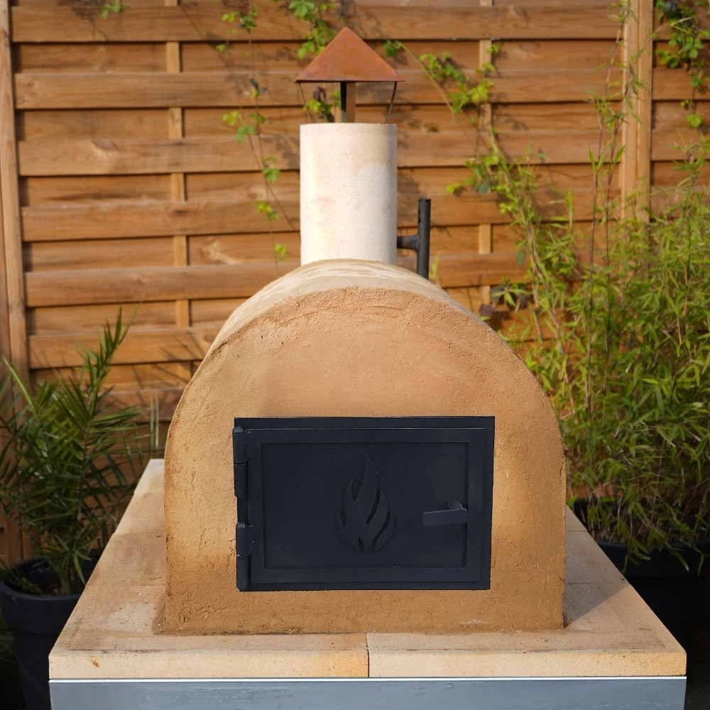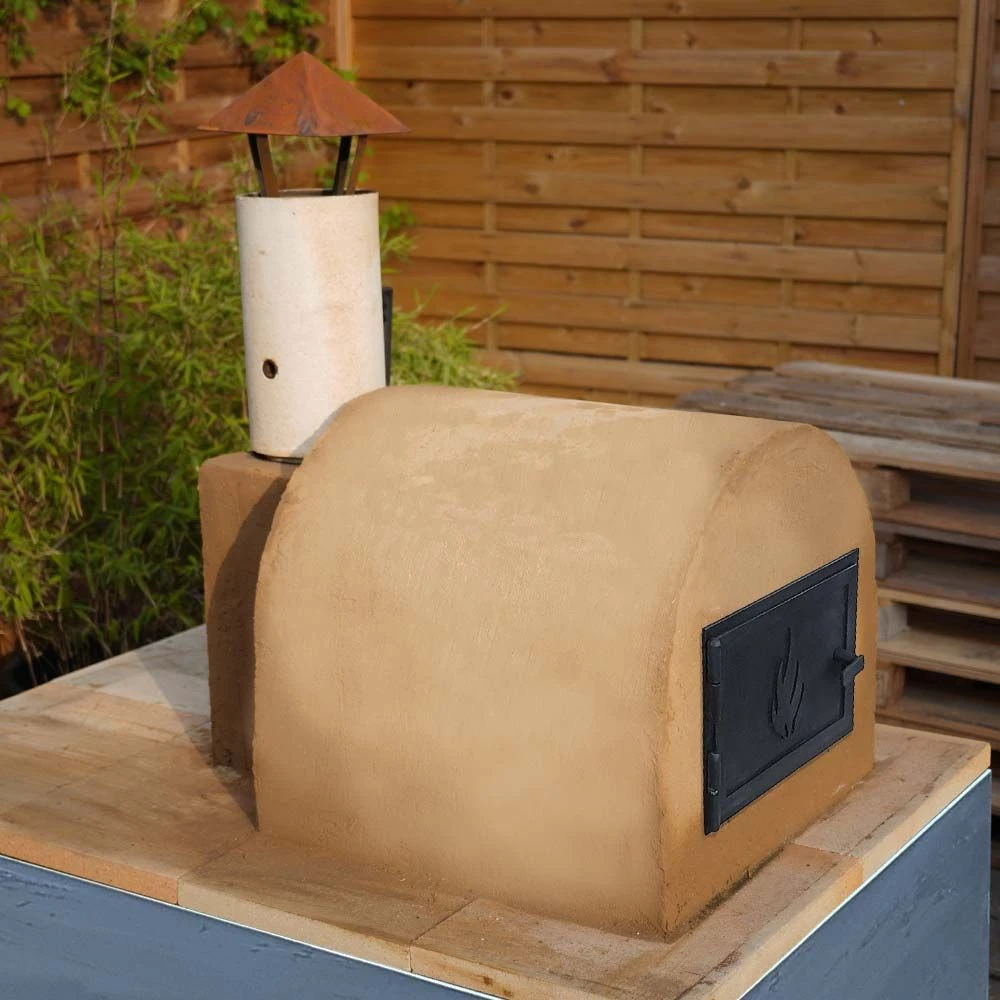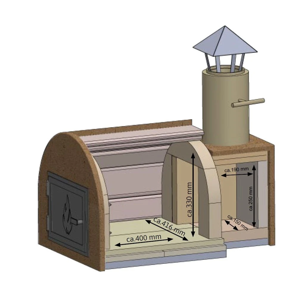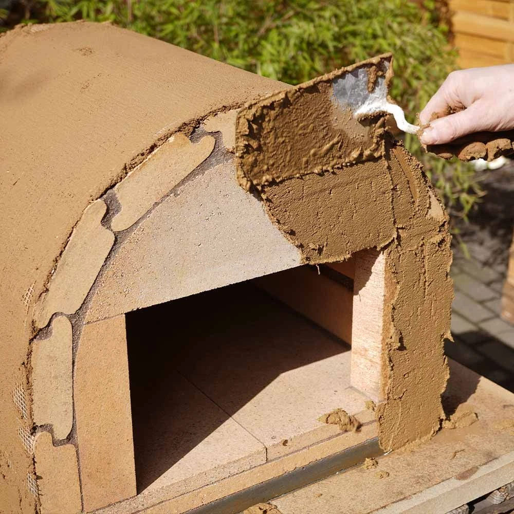 Der Pizzaofen Bausatz Genua Premium mit Lehmputz ist eine Erweiterung zum Genua Basic. Er verfügt zusätzlich über: Lehmputz (mit Stroh), Armierungsgewebe und eine Abdeckung für das Abgasrohr.