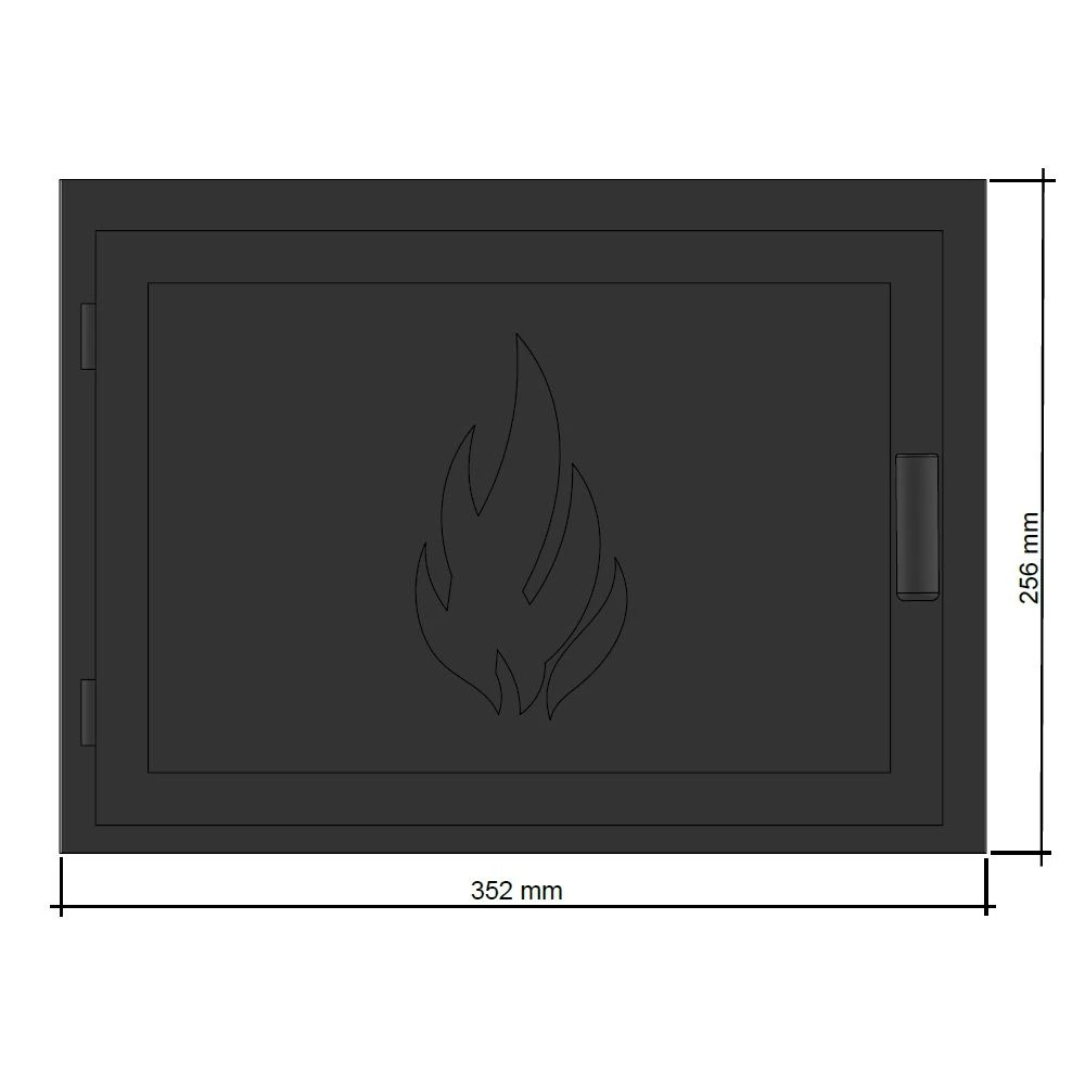 - Ofentür – Stahltür: Außenmaß: 35,2 x 25,6 cm / Einbaumaß: 30 x 20 cm / Innenmaß: 29,2 x 19,6 cm
