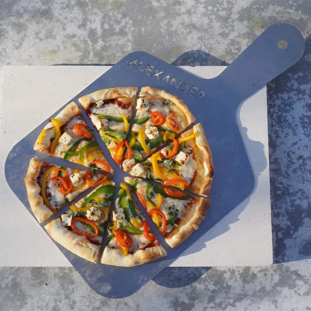 Ein Pizzaschieber ist unverzichtbar für das Backen von Pizzen. Gestalten Sie unseren Pizzaschieber von PUR Schamotte mit Ihrem Wunschnamen oder einer Jahreszahl – ob als Geschenk oder für Sie selber. Unsere Pizzaschieber aus eigener Produktion passen in alle Pizzaofen Bausätze von PUR Schamotte. Gefertigt aus rostfreiem Edelstahl sind sie langlebig, sodass Sie besonders viel Freude an dem Pizzaschieber haben.