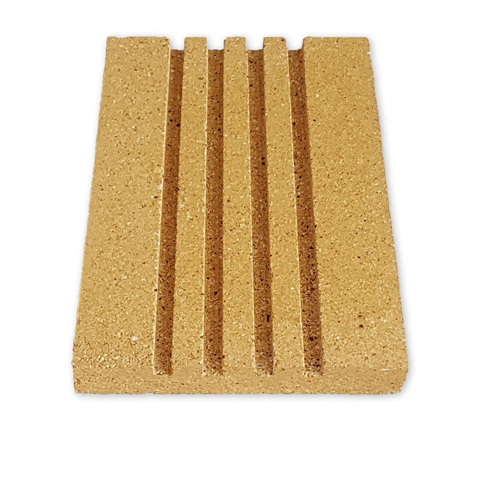 Unsere Rillenplatte 300x200x30mm „PUR Schamotte“ mit 4 Rillen aus hochwertiger Schamotte ist für den Bau von Grillplätzen, Gartenkaminen sowie Grillkaminen vorgesehen. Wir bieten Schamotteplatten und – steine mit Rillen als Einschub für das Grillrost in vielen Größen und Varianten an. Die Rillen haben eine Tiefe und Breite von ca. 10mm und erstrecken sich über die gesamte Länge der Rillenplatte.