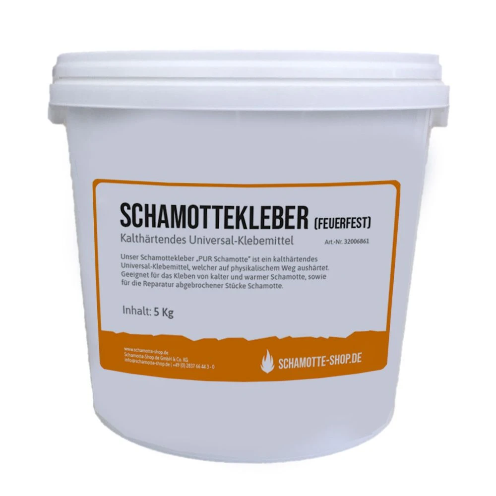 Unser Schamottekleber „PUR Schamotte“ ist ein kalthärtendes Klebemittel, welcher auf physikalischem Weg aushärtet. Der Kleber hat eine hervorragende Dauerhaftung, hohe Festigkeit, schnelle Abbindung und bietet durch spezielle Zusätze eine einwandfreie Benutzung und verhindert Oberflächenspannungen. Geeignet für das Kleben von kalter und warmer Schamotte, sowie für die Reparatur abgebrochener Stücke von Vermiculite, Schamotte, Isoliersteine und Calzium Silikat und den Zusammenbau von Feuerraumauskleidungen. Schamottekleber „PUR Schamotte“ auf beide Klebeflächen dünn auftragen und die Teile sofort zusammenfügen. Alternativ kann auch nur eine Klebefläche etwas dicker bestrichen werden.