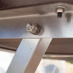 Das Tischgestell wird aus hochwertigem Edelstahl gefertigt und die Tischplatte besteht aus robustem Holz.